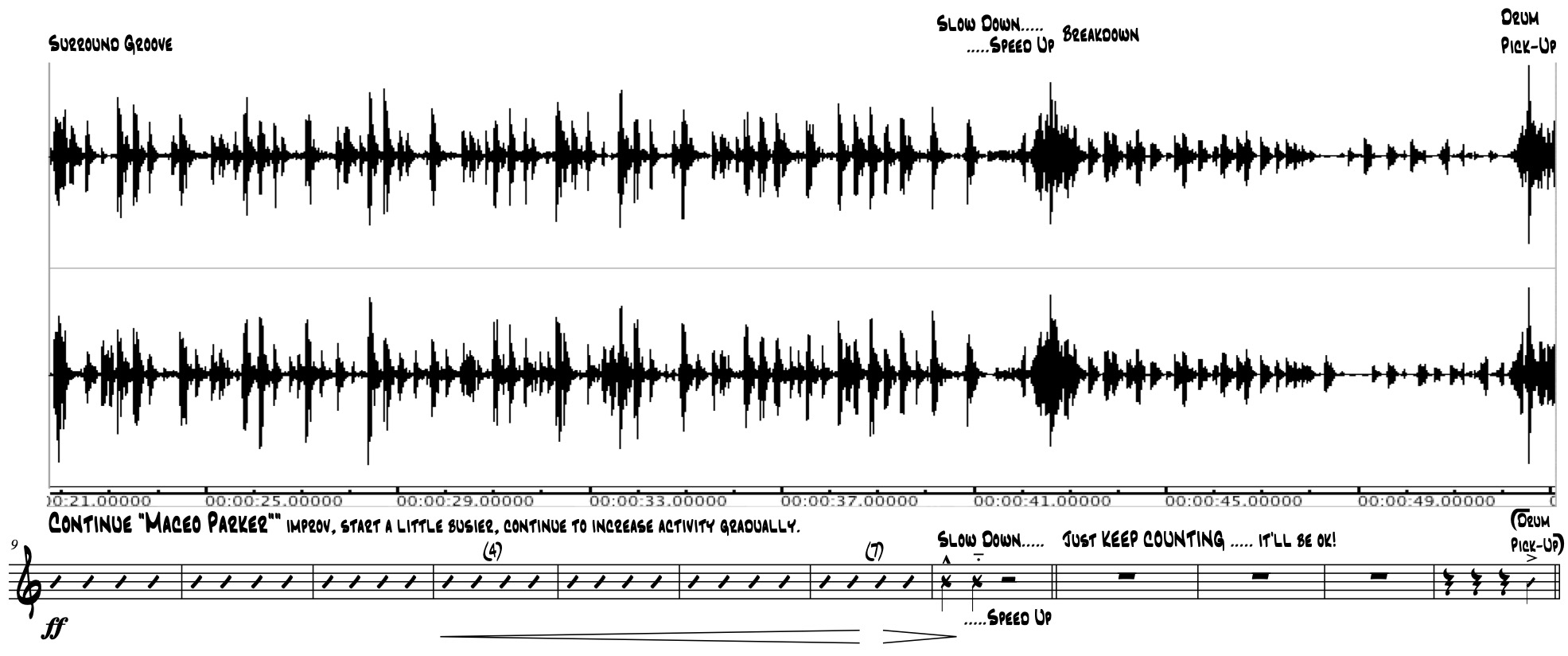 Three Improvisatory Groovescapes for MultiChannel Surround Sound and Instrument - Instrument and 5.1 Playback, 4:55 (2007)